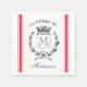 Vintage French etched graphics and red ticking tape stripes are the perfect addition to your French country kitchen decor on this custom set of paper napkins. Don't forget the finishing touch of personalisation with your monogram and family name.