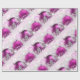 Glamourous Christmas wrapping paper with beautiful red-violet glittery Christmas ornaments, white sparkling lights, shiny silver pearls and tinsel.