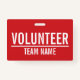 Red Volunteer Badge with Custom Team Name ID Badge