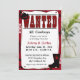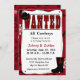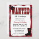 Red Wanted Poster with for boys birthday Party. Design has a boot with a red star and a black cowboy hat with a red band. Customise your birthday party invitations with your party details.