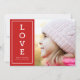 Send your friends and family "Warm Wishes" this Christmas/Holiday season with this red minimalist Holiday photo card that features the word "Love" vertically. Card also includes a patterned back side.