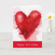 A large blood red watercolour heart in fluid art style against a light grey background. A hip, girly, arty, gothic, free form art style representing love in all its forms. This birthday card is fully customisable to include any greeting.