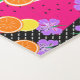 Red green watermelon, oranges, bright yellow lemons tropical fruits on a black and white background. Lovely lavender hibiscus flowers are scattered across the fruits. A fun summer print. Look for coordinating prints in the Tropical Watermelon Collection.