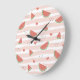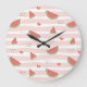 Red Watermelons, Hearts, Stripes, Summer Pattern Large Clock