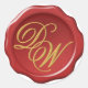 Inside a (faux) red wax seal with irregular contour, there is an elegant yellow monogram from 2 initials written in an elegant calligraphic script (the default ones are D and W). It can be used for "sealing" a wedding invitation, with the initials of the bride and groom, but also for ordinary mail, with the initials of the first and last name.
