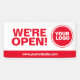Announce Your Business is Open for Business! Captivate attention with our striking 'We Are Open' banner sign. Craft a bespoke message with customisable text. Infuse your business logo for a distinctive touch. Modify colours across the design to match your brand's identity.