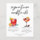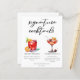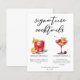 This sophisticated red signature cocktails menu sheet features simple black typography above 2 of your favourite drinks and their ingredients for your coastal wedding bar. A chic Red Wedding drink and Cherry French 75 drawing add a fun flair to your bar menu. Complete with the couple's names and date for their reception.