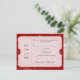 Matching RSVP Reply Card to couple with the red Ticket Invitations, a unique and stylish way to celebrate your special wedding day. Elegant design with swirl background and faux ticket design. Customise online with your info