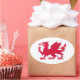Shape of the Welsh Dragon in red (from flag of Wales).