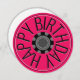Say Happy Birthday in retro steam style with this round greetings card. The card is red with a design like a wheel, cog or gear, ideal for steampunk fans and rail enthusiasts. The greeting 'Happy Birthday' appears in elegant retro capital letters, in black, in a circle around the edge of the design. Steel and charcoal grey detailing and highlights add to the industrial theme. The reverse side of the card has plenty of white space for your own individual message.