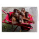 Red wheelbarrow blank notecards are perfect for letter writing or adding your own personalised greeting inside. The expression monkey business or "more fun than a barrel of monkeys" might seem to fit this wildlife card even though this red wheelbarrow is filled with great apes. These little babies are orphan orangutans at the Care Centre on the island of Borneo. The artist volunteers here and donates her profits to buy supplies.