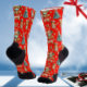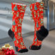 This festive seamless print is designed for the Christmas season and is perfect for wearing during shifts at hospitals or clinics. It features a playful design with a red background that showcases gingerbread girls dressed as nurses. The print also includes elements like cookie-shaped bows and Christmas trees alongside stethoscopes. These high-performance athletic socks are created to provide comfort and support for everyday tasks at work, making them an excellent choice for Christmas gift exchanges.