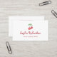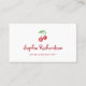 These stylish business cards feature a cute, whimsical red cherry fruit watercolor illustration with green leaves and elegant red vintage script for a chic and simple retro design. There is a scannable QR code on the back.