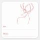 White background, and a red abstract one line reindeer. A to/from tag. space for you to write by hand.