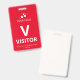Vertical visitor badge with a simple design in white against a red background. A large white V makes it easy to quickly recognise the visitor as such. Personalise with your business logo.