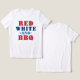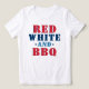 Stylish and funny Fourth of July holiday / patriotic shirt design features "Red White and BBQ" in red, white, blue, navy, and white colours with star accents.