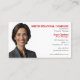 Red and black text make this business card a stand out, with a photograph of a professional woman. The example is financial planning, but could easily be adapted to real estate, health care, marketing, photographer, and many more.