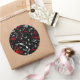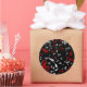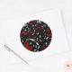 A cool, modern and eye-catching musical design featuring a random jumbled pattern of musical notes and treble clefs in red and white on a classical black background.