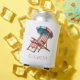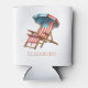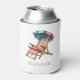 This cute can cooler features a patriotic beach chair and umbrella of red, white and blue stars and stripes. Perfect for 4th of July holiday parties. Personalise the front with your choice of name and the back with your special text.