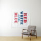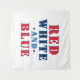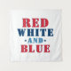 Stylish Fourth of July holiday party photo backdrop tapestry sign design features a "Red White and Blue" typography design in red, white, blue, navy colours with star accents.