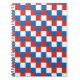 Classy and unique Spiral Notebook with red white and blue chequered pattern.