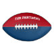 Custom football done in blue and red, on the top panels. Personalise the bold white text with your name or your teams name. Great gift idea.