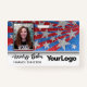 Faux red white and blue glitter sparkles delightfully behind a photo template with black and white frame. Easily update the name and professional job title for each custom employee badge. There is also space for a company logo—delete to leave blank. Backside features more faux glitter and an image template for the same logo as the front side. Available in many other styles and colours.