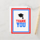 Say Thank You with this Red, White and Blue Graduation Party Thank You Postcard. It features 'Thank You' in red and blue respectively and a black grad cap surrounded by a blue, red and white border. The back is blank for your personal message.