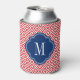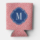 Cute trendy monogrammed can or bottle cooler with a preppy Greek key pattern. Personalise it with a custom monogram or other text in a chic quatrefoil frame. Click Customise It to change text and fonts to create a unique one of a kind gift for your bridesmaids and wedding party! Contact me before ordering to customise patterns or design to coordinate with any wedding colours.