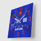 Personalised Red White and Blue Hockey Clock. Hockey Room Decor. Type in your Name, your Jersey Number or Delete it. Cool burnished look blue hockey bedroom ideas for boys and girls. Awesome hockey team gifts and senior hockey gifts. CALL Designer Linda: 239-949-9090 if you would like me to change the red white and blue hockey wall clock colours.
