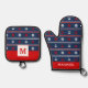 Red White And Blue Nautical Pattern Oven Mitt & Pot Holder Set