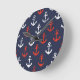 Red White And Blue Navy Pattern Round Clock