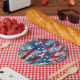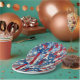 Abstract US flag ai art. Patriotic stars ands stripes red, white and blue Fourth of July party paper coasters.