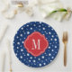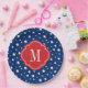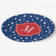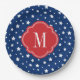 Red White and Blue Patriotic Stars Monogram Paper Plate