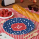 Custom printed paper plates with a cute patriotic star pattern and your custom monogram or other text in a stylish quatrefoil frame. Click Customise It to change text fonts and colours or add your own images to create a unique one of a kind design. Perfect for your next family picnic or 4th of July barbecue party!
