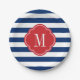 Red White and Blue Patriotic Stripes Monogram Paper Plate