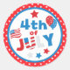 Red, White and Blue Stars & Flag Fourth July Classic Round Sticker