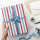 Red White and Blue Stripe Pattern Patriotic Wrapping Paper