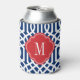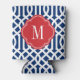 Cute trendy monogrammed can or bottle cooler with a preppy trellis pattern. Personalise it with a custom monogram or other text in a chic quatrefoil frame. Click Customise It to change text and fonts to create a unique one of a kind gift for your bridesmaids and wedding party! Contact me before ordering to customise patterns or design to coordinate with any wedding colours.