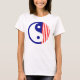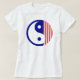 Yin and Yang are two opposites working together in harmony. This peaceful and patriotic zen symbol is blue with red and white stripes. It makes a unique American themed gift idea. Customise it to change t-shirt styles.