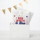 "Red, White and Due 4th of July Patriotic Baby Shower Favour Bag" is a charming and festive favour bag designed to enhance a baby shower with a patriotic theme on Independence Day. The title "Red, White and Due" cleverly combines the colours of the American flag with the anticipation of the baby's arrival, creating a playful and celebratory atmosphere. This favour bag likely features patriotic elements such as stars, stripes, and red, white, and blue colours, adding a cohesive and festive touch. It's perfect for filling with small gifts or treats for guests, making them feel appreciated and adding to the joyous spirit of the baby shower celebration.