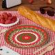 Colourful Christmas inspired colours of red, white and green designed into vivid paper plates.