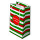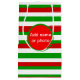 Bold red, green and white striped gift bag with red and green circle. Personalise with a name, initials or photo.
