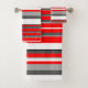 Red white and grey Stripes Bath Towel Set