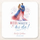 Red White and I do Americana Wedding Square Paper Coaster