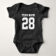 Cute football jersey bodysuit for baby. Mum and dad love sports. It's only natural the baby should too. Cute baby bodysuit in red and white colour. You can customise the name and player number on the front and back of the jersey. Not just for football fans. Any type of sports fan will appreciate this design. Baseball, basketball, soccer, ice hockey and more.