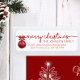 Elegant and classy return labels for Christmas (Xmas) Holiday greeting cards / envelopes. Red ornament bauble, white background. Modern white letters for family name and address. Letter colour and font can be changed.