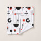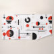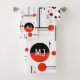 Red, white, and black Bauhaus modern geometric shapes artistic composition on a custom white background.
