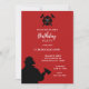 Fireman Red Black and White Birthday Invitation. Design has a silhouette of a firefighter with a hatchet and a fire department emblem with name. Add your details for your retirement party.