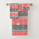 Red White Black Greek Key Fret Pattern Design Bath Towel Set